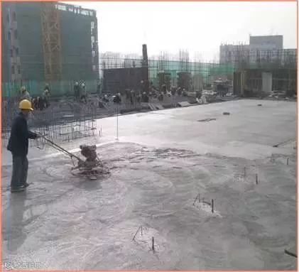 楼板混凝土浇筑:混凝土初凝前用2m刮杠沿四周墙的墙根处向中间刮平,再用压光机压实。终凝前用木摸子搓平,再用铁摸子压实2-3遍,表面塑料条帚扫毛。