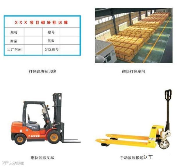 4.每包砌块大小根据砌块的规格而定,需考虑项目部叉车、手动液压搬运车吨位及电梯笼大小。
