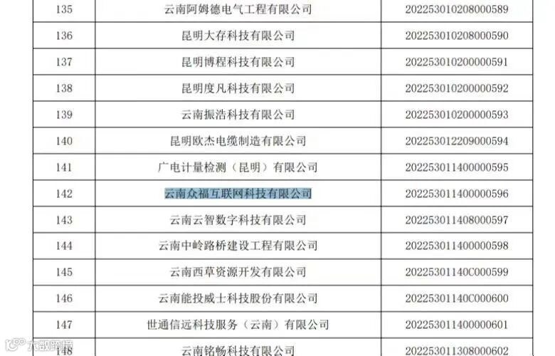 导读:2022年6月24日,经云南省科技厅批准并公示,云南众福互联网科技有限公司正式荣获