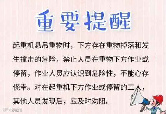 起重机悬吊重物时,有的工人在重物下方作业或停留,一旦重物捆绑不牢或起重机出现故障,工人会被砸伤。
