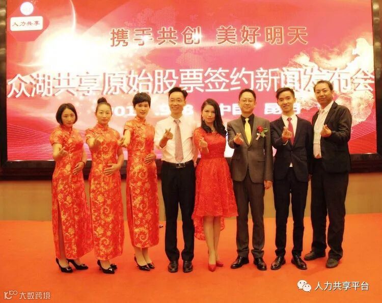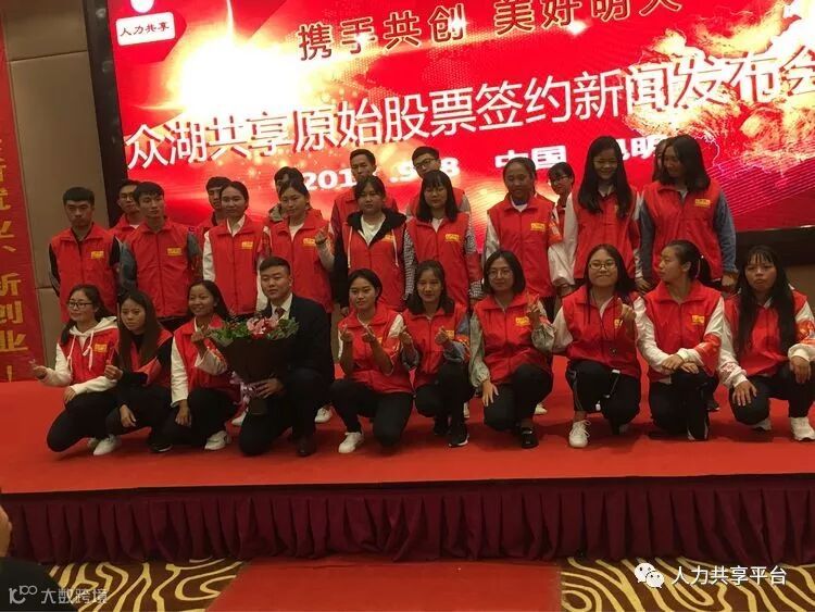 9月8日这一天是我们人力共享一个历史性的日子,在我们人力共享所有家人的共同努力下,云南公司全体动员在云南师范大学旁 丽水云泉大酒店举行了一场《众湖共享原始股票签约新闻发布会》,站在台上的是我们人力共享联合创始人以及协助我们公司上市东方文交所的重要工作领导人员!这一刻大家激动不已、热血澎湃!