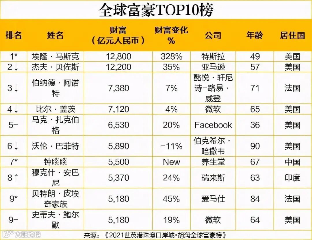 特斯拉创始人马斯克以1.28万亿人民币成为新的全球首富,超越了连续守住多年全球首富宝座的贝佐斯。中国新晋的首富钟睒睒也冲进了前7,这也是继李嘉诚在2013年冲进前10之后的另一个中国人。