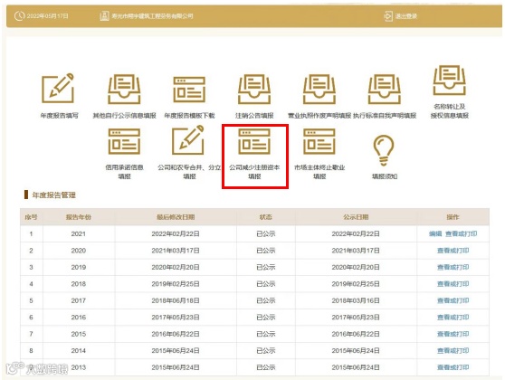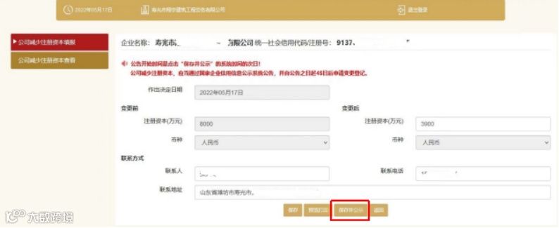 ③根据实际减资情况填写资料,【保存并公示】