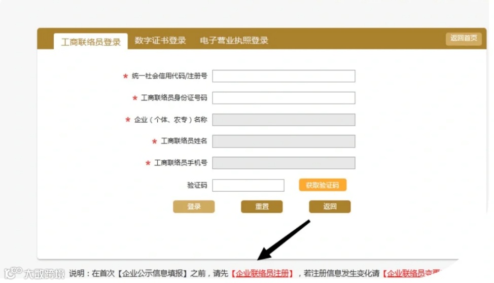 如果已经注册过工商联络员,则直接登录即可;没有注册过,需要先注册工商联络员。