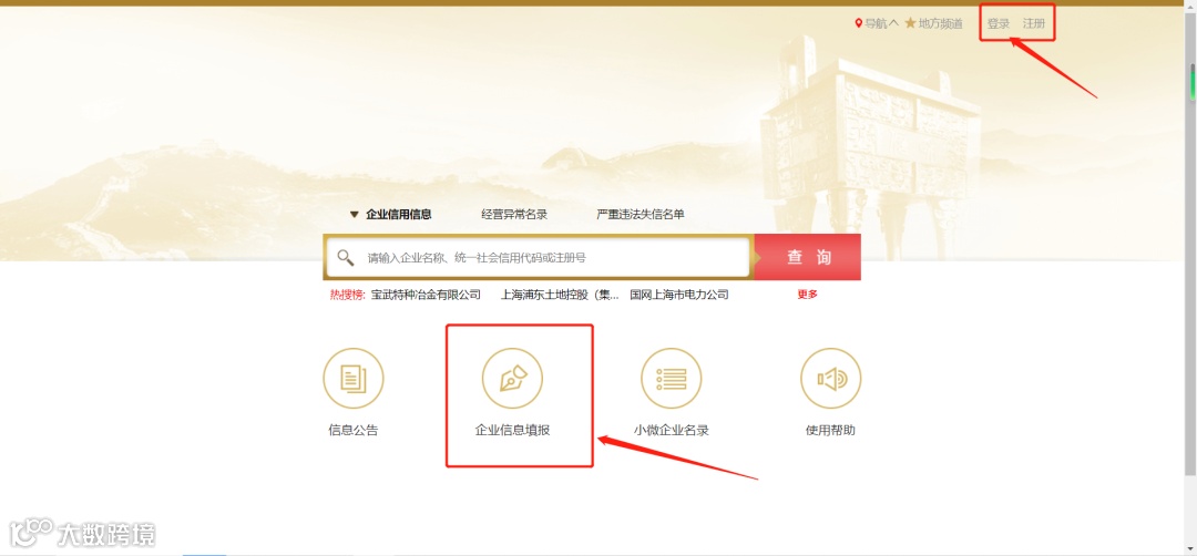 ①登录国家企业信用信息公示系统,点击【企业信息填报】