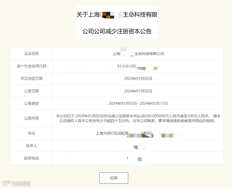以上减资公告就发布完成了,接下来需要等待45天的公示期。在这期间,公司的债权人有权要求清偿债务或提供相应担保。45天公示期满无异议后方可进行下一步操作。