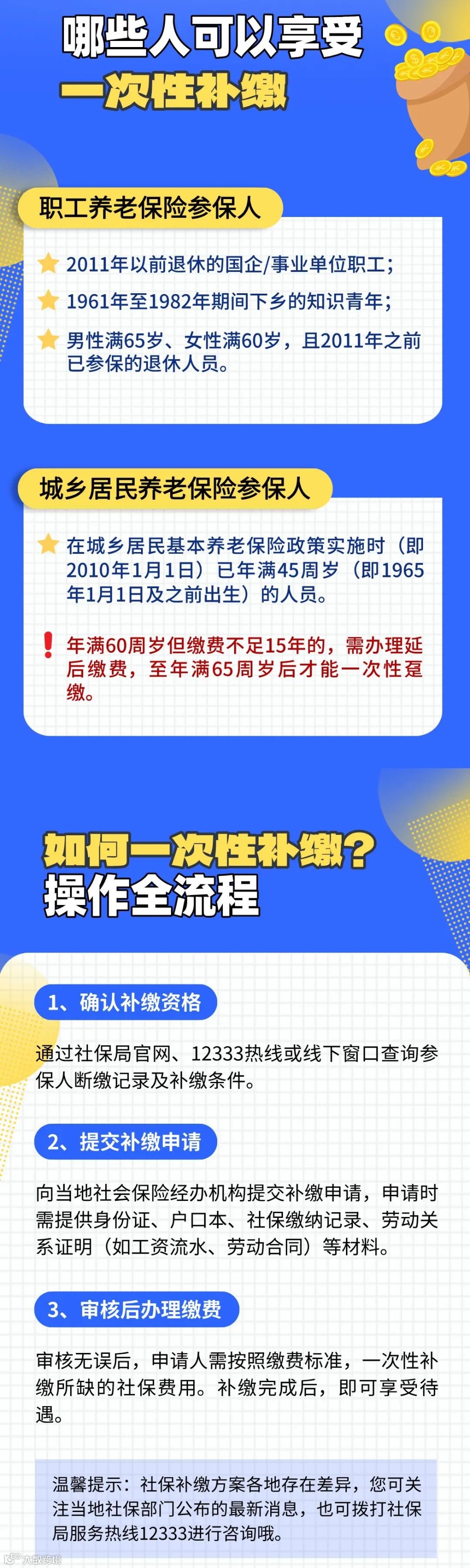 假如距离缴满15年时间还有很长一段时间,选择每年度补缴不划算,也可以考虑将职工社会保险变成居民社会保险。