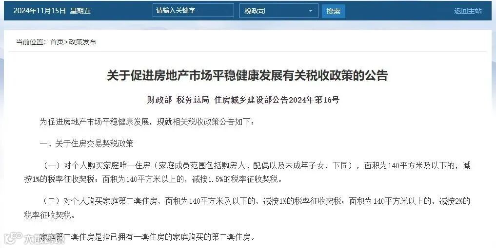 11月13日,财政部 国家税务总局 住房城乡建设部发布《关于促进房地产市场平稳健康发展有关税收政策的公告》。