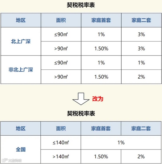 1、对个人购买家庭唯一住房(家庭成员范围包括购房人、配偶以及未成年子女,下同),面积为140平方米及以下的,减按1%的税率征收契税;面积为140平方米以上的,减按1.5%的税率征收契税。