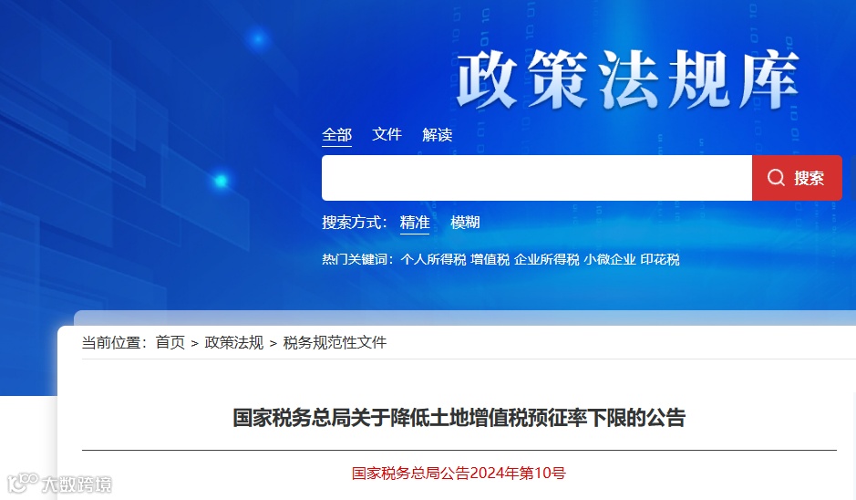 为更好发挥土地增值税调节作用,根据《中华人民共和国土地增值税暂行条例》及其实施细则等有关规定,将土地增值税预征率下限降低0.5个百分点。调整后,除保障性住房外,东部地区省份预征率下限为1.5%,中部和东北地区省份预征率下限为1%,西部地区省份预征率下限为0.5%(地区的划分按照国务院有关文件的规定执行)。