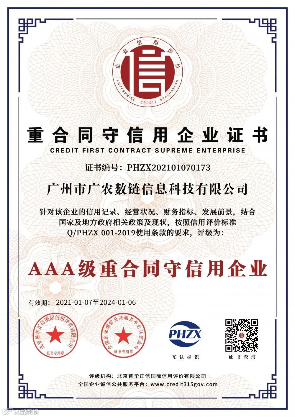 喜讯!广农数链获“AAA级信用企业”权威认证