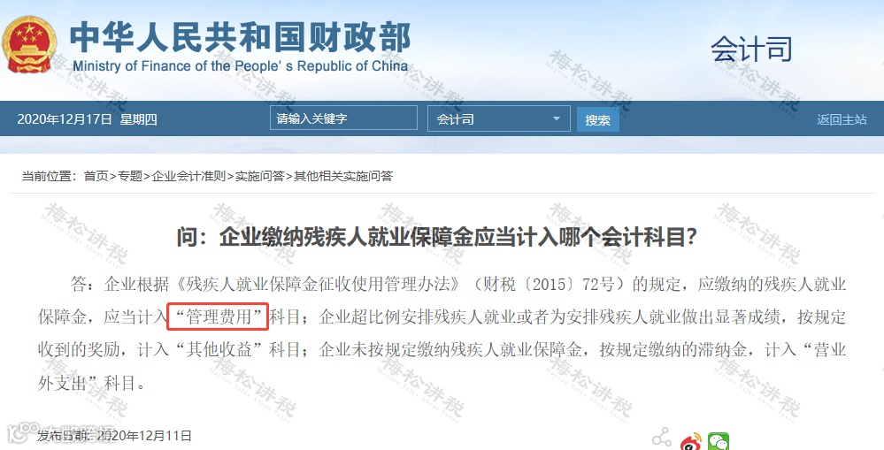 1、残保金计入“税金及附加”还是“管理费用”?