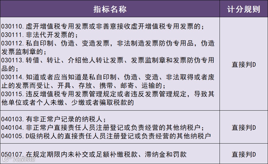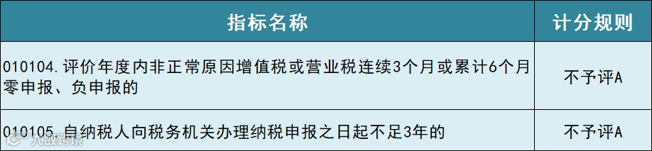 以下两个指标为常见不予评A指标,一旦触发指标,即使纳税信用评价得分在90分以上,年度纳税信用级别仍然为B.