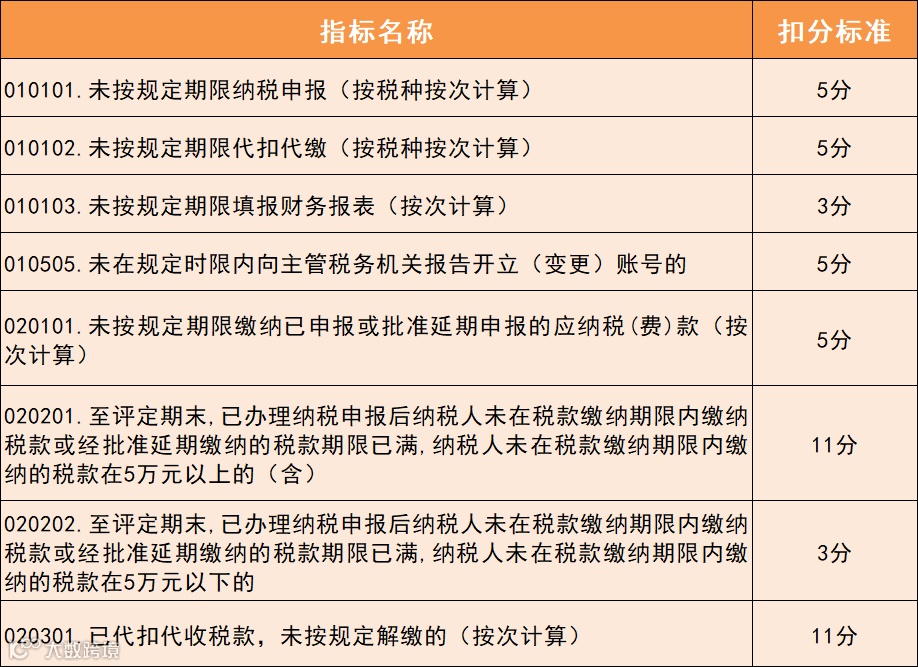 常见的扣分指标