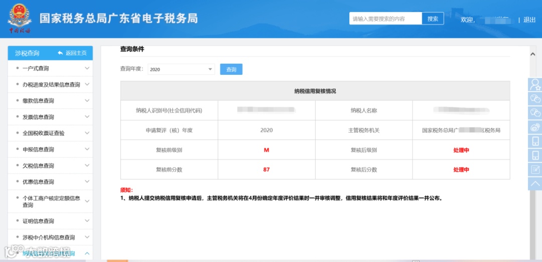 纳税信用复核情况查询流程