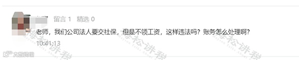 但是!!!实务中还存在法人不领工资但却交社保的情况,小编就曾收到过这样的留言: