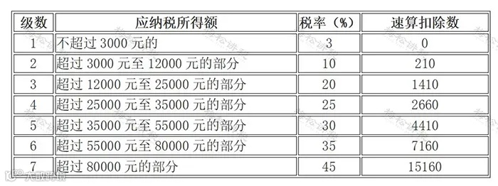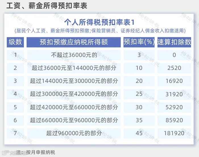 以全年一次性奖金收入除以12个月得到的数额对照月度税率表确定: