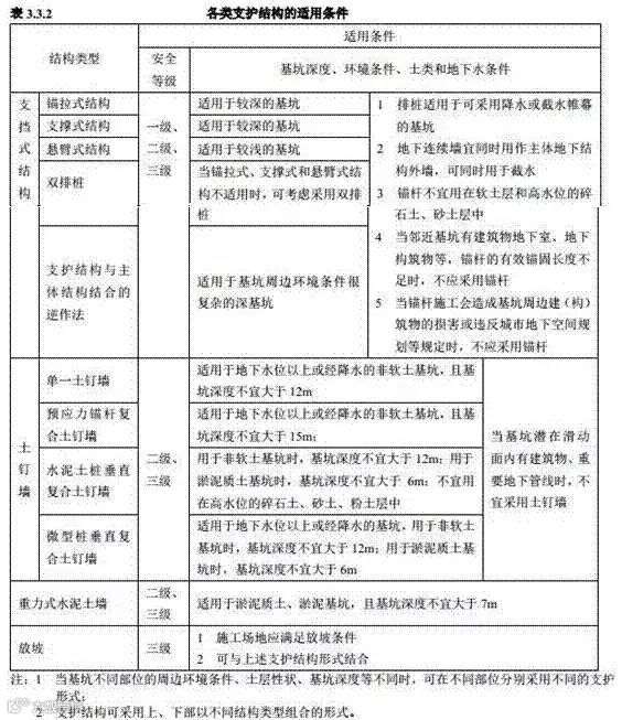 3、基坑监测的选择应根据基坑类别、设计要求、场地条件、当地经验和方法适用性等因素综合确定,监测方法应合理易行。(GB 50497)
