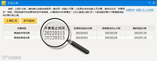 (3)反写监控:点击【数据管理】-【汇总上传】-【反写监控】。点击反写,开票截止时间则会更新到2022年3月15日表示成功。