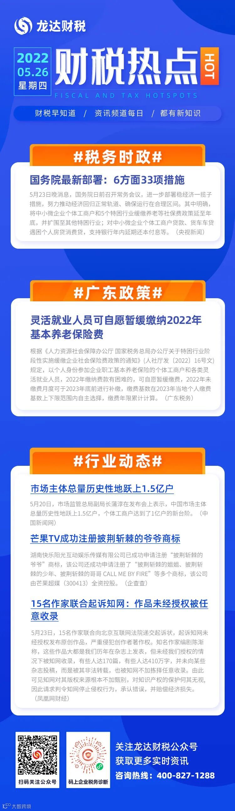 如果你或你朋友有注册公司、注销公司、代理记账、财税咨询、资质专利申请等需求,龙达都可以为大家服务,为亿企成长助力!