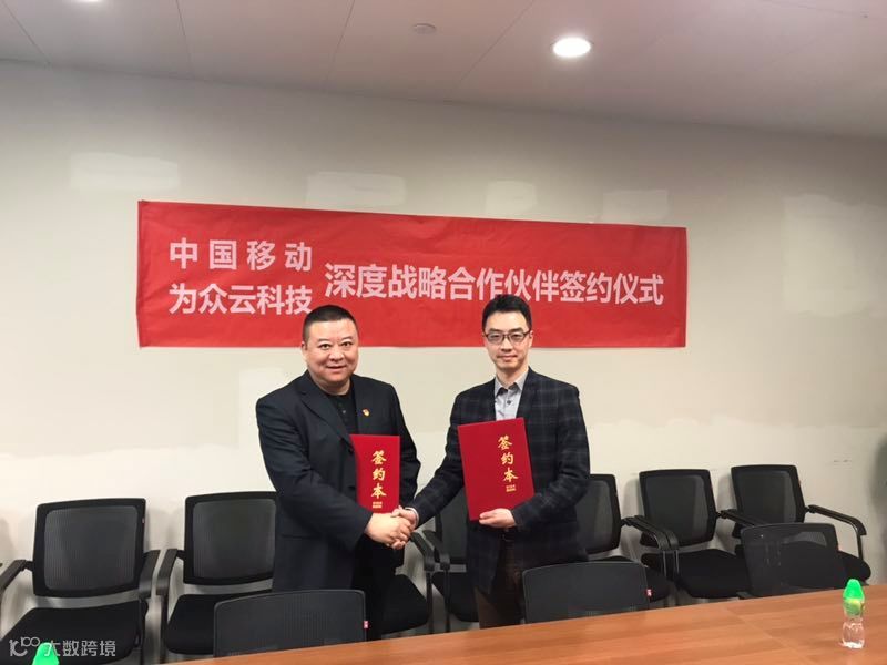 1月8日,为众云科技与中国移动战略合作协议签约仪式在深圳举行。为众云科技副总经理(管总)与中国移动物联网营销中心总经理(程总)分别代表双方签署战略合作协议, 标志着双方全方位合作正式开启。