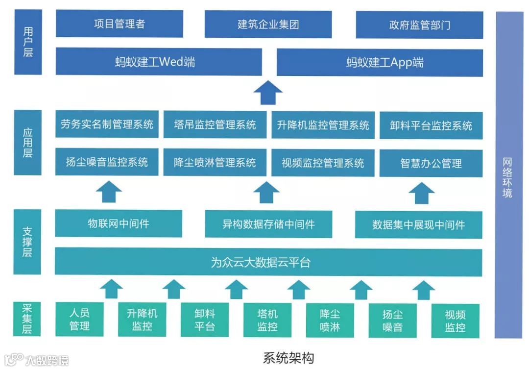 数据的采集及分析为核心,满足不同角色的功能及数据的差异化展现,为项目管理者,建筑企业集团,政府监管部门等角色提供对应的管理支持及数据服务。