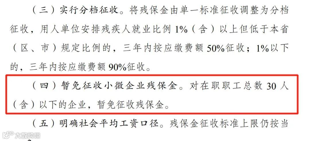 对在职职工总数30人(含)以下的企业,暂免征收残保金。