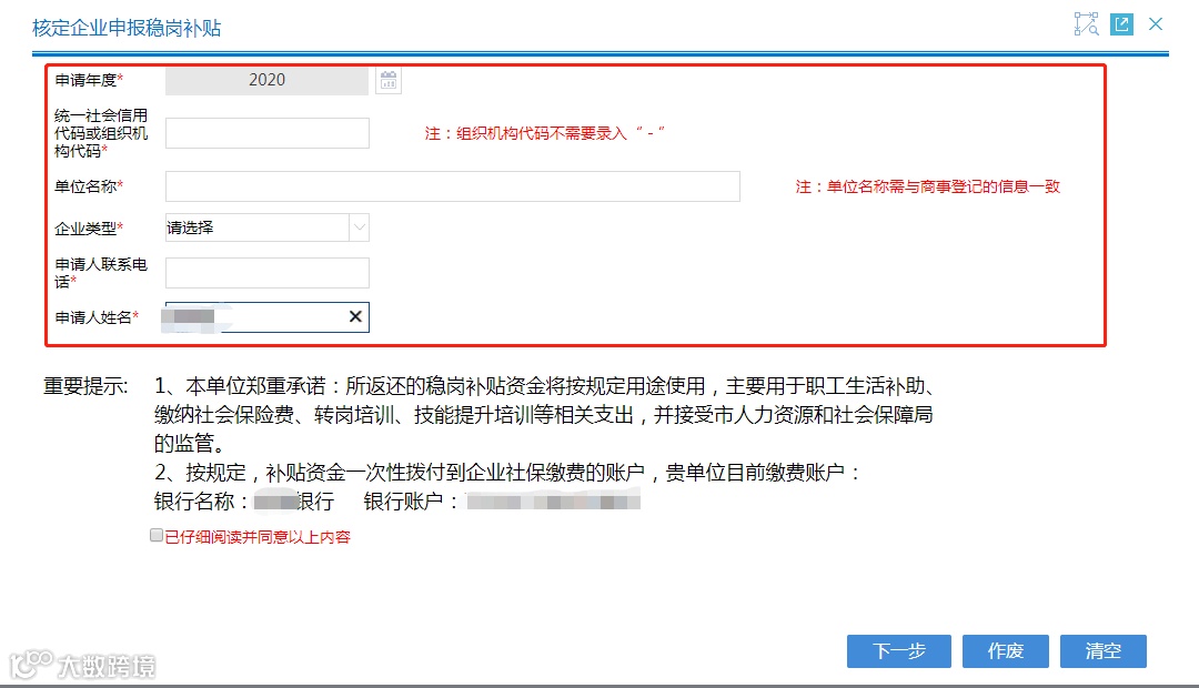 ⑥根据提示输入公司信息后将下方红字部分前的选择框点击勾选后,点击下一步;