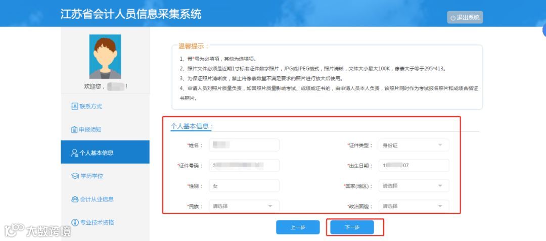 南京市会计人员信息采集网上步骤截图如下:
