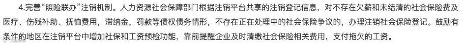 人力资源社会保障部门根据注销平台共享的注销登记信息,对不存在欠薪和未结清的社会保险费及医疗、伤残补助、抚恤费用,滞纳金,罚款等债权债务情形,不存在正在处理中的社会保险争议的,办理注销社会保险登记。