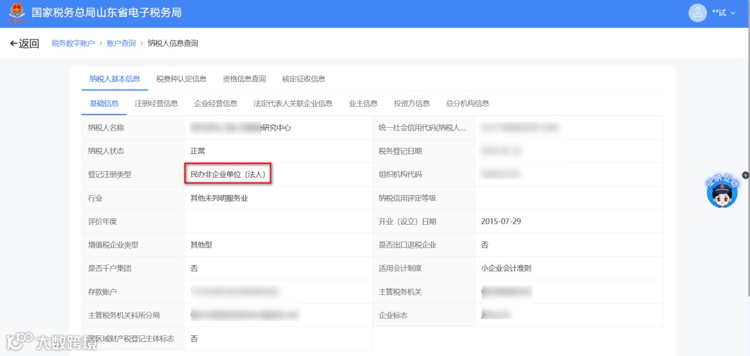 根据《财政部关于调整残疾人就业保障金征收政策的公告》(2019年第98号)、《财政部关于延续实施残疾人就业保障金优惠政策的公告》(财政部公告2023年第8号),自2020年1月1日起至2027年12月31日,在职职工人数在30人(含)以下的企业,暂免征收残疾人就业保障金。新电子税务局系统根据纳税人的税务登记信息,来判断是否为企业类型。纳税人可通过“我要查询—一户式查询—纳税人信息查询”查看纳税人基本信息,如下图所示: