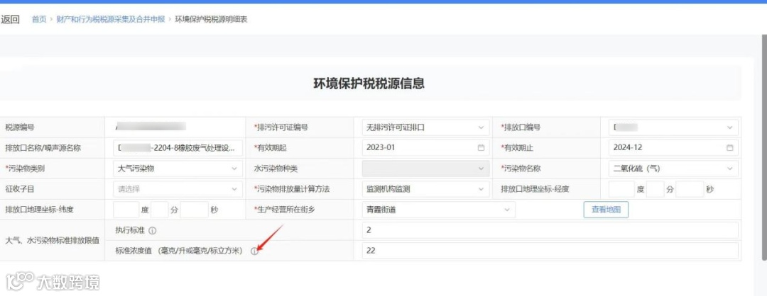 如您单位环境保护税申报时有排放口存在超标情形时,当月所有的排放口均不可再享受环境保护税的税收减免。您可查看税源采集界面中的标准浓度值与申报计算及减免信息界面中的最高浓度值进行比较,最高浓度值大于标准浓度值即已超标。