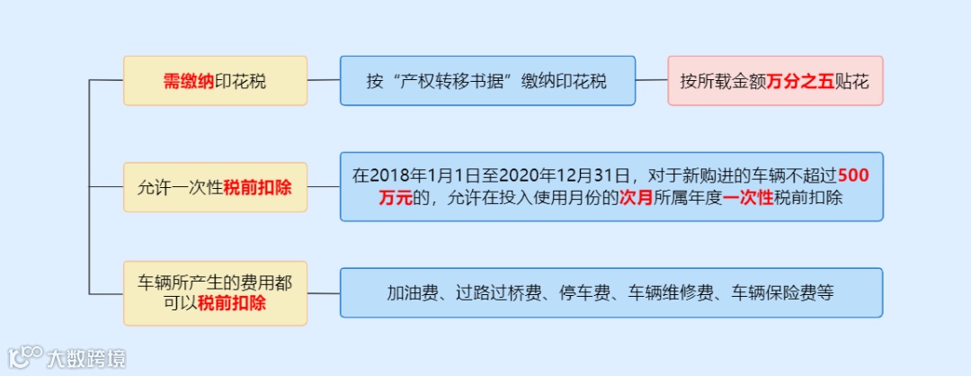 而且,公司购入的固定资产,如果单价不超过500万元,可以一次性在企业所得税前扣除,如果购买的是车辆,那么车辆发生的各种费用也可以入账并税前扣除了。