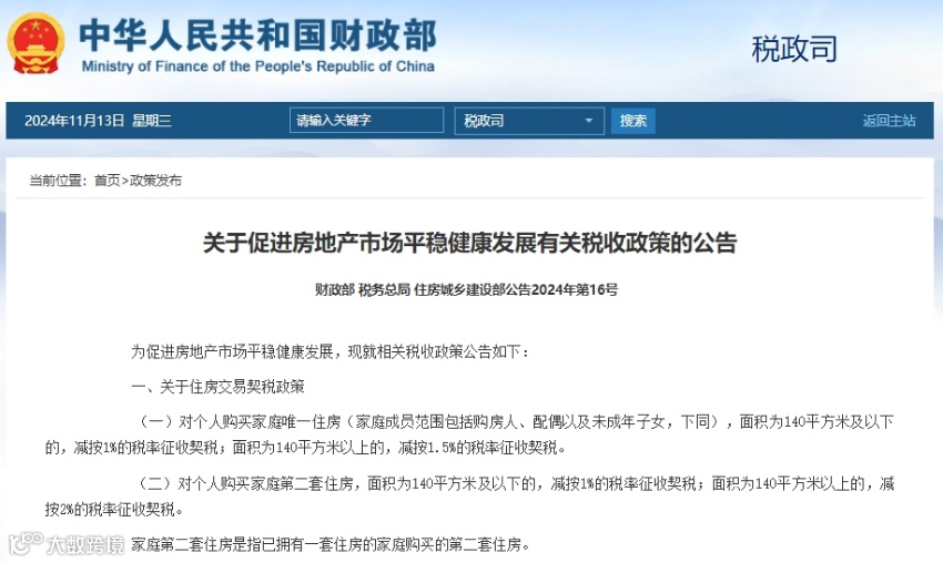 11月13日,财政部 国家税务总局 住房城乡建设部发布《关于促进房地产市场平稳健康发展有关税收政策的公告》。