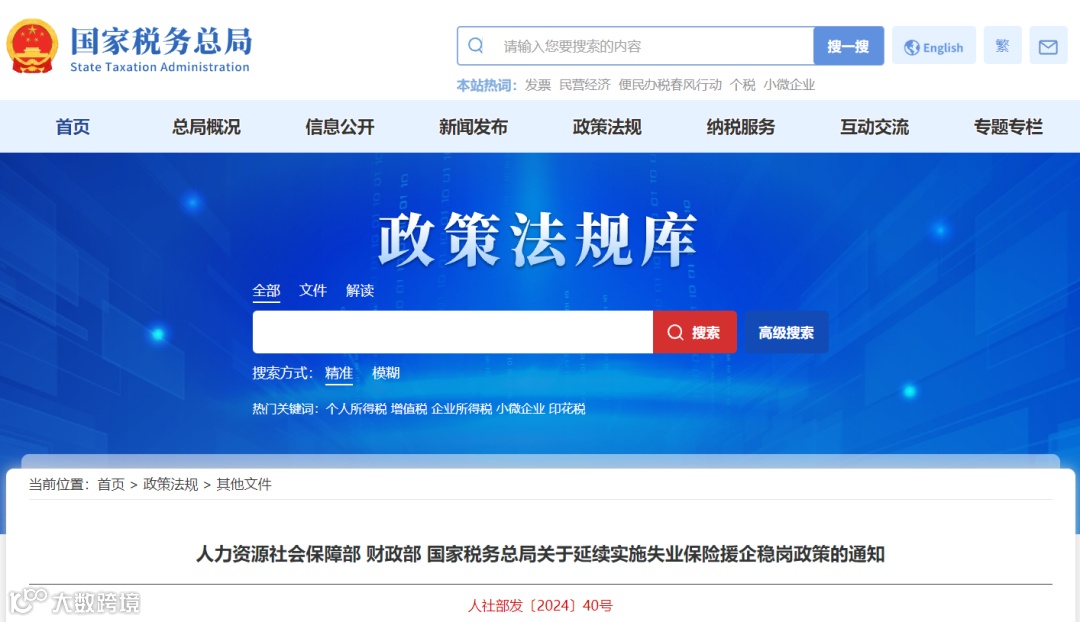 国家税务总局发布《关于延续实施失业保险援企稳岗政策的通知》。