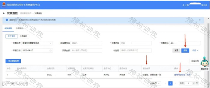 此外,还提供【打印查验结果】服务。此页面会显示发票的基本信息及查验次数、查验时间、查验结果。
