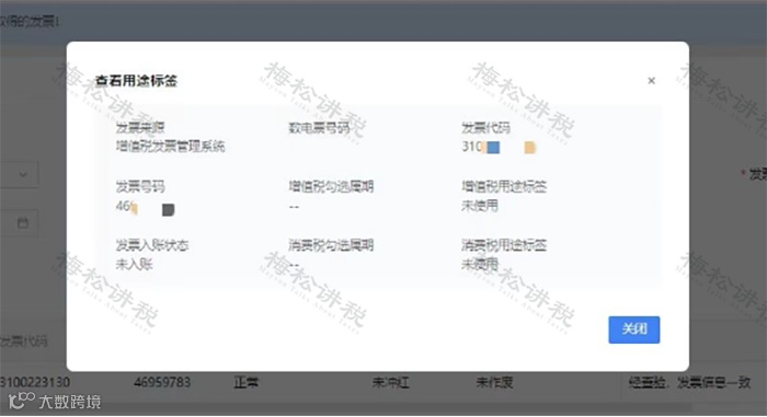 可以点击操作栏的【查看用途标签】对发票的“入账状态”、“增值税勾选属期”等信息进行查看。