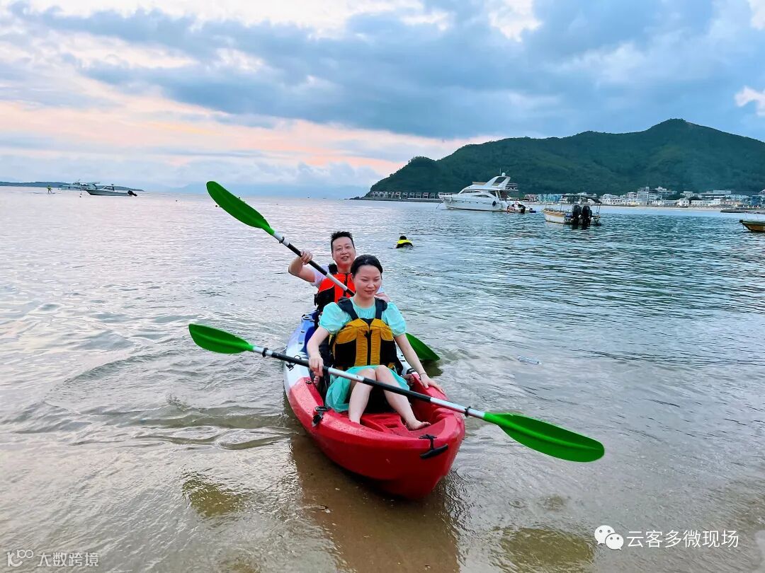 乘坐游艇美丽的大鹏湾海面上,遥望着美丽的大鹏半岛,从另外一个视角来欣赏您的美,巍巍的七娘山,从远处看去也就是小山丘,张开翅膀的大鹏遥遥的注视,婉如翱翔的雄鹰。海湾中行驶,倾听海风的呼啸,感受波浪的起伏。一叶的扁舟,可以传出的欢乐声,愉悦的海上欢声笑耳声虽然被海风海浪吞噬,但是依然抵挡不住内心的呐喊