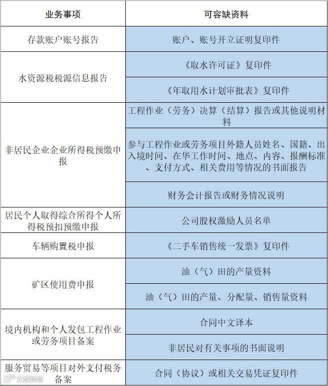 取消报送:指现有文件规定纳税人办理税费事项时需报送的资料改为无需报送。