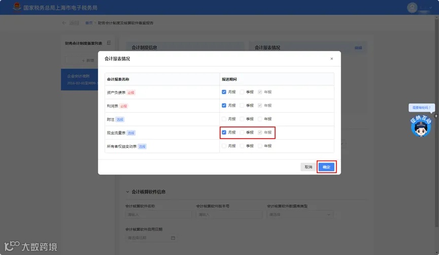 2.进入修改后,勾选“现金流量表”,点击【确定】完成修改。