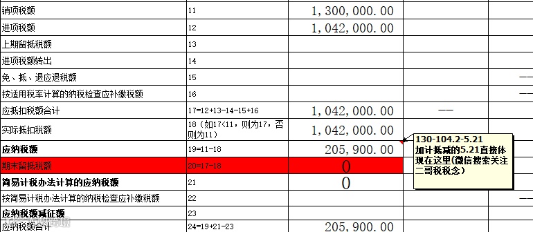 应交税费-应交增值税(进项税额)104.2万