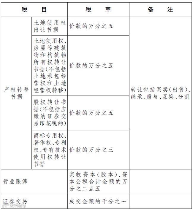 3.增加“证券交易”税目,按“成交金额的千分之一”征收印花税。