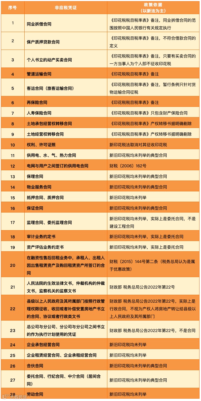 再具体一点的话,无需缴纳印花税的非应税凭证列表如下(提示:本表未列举免税的应税凭证,不属于征税范围与免税是有本质区别的):