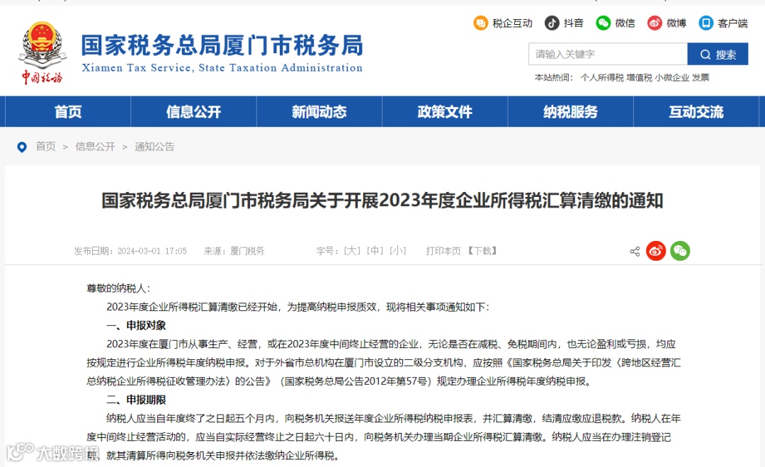 税局刚刚通知