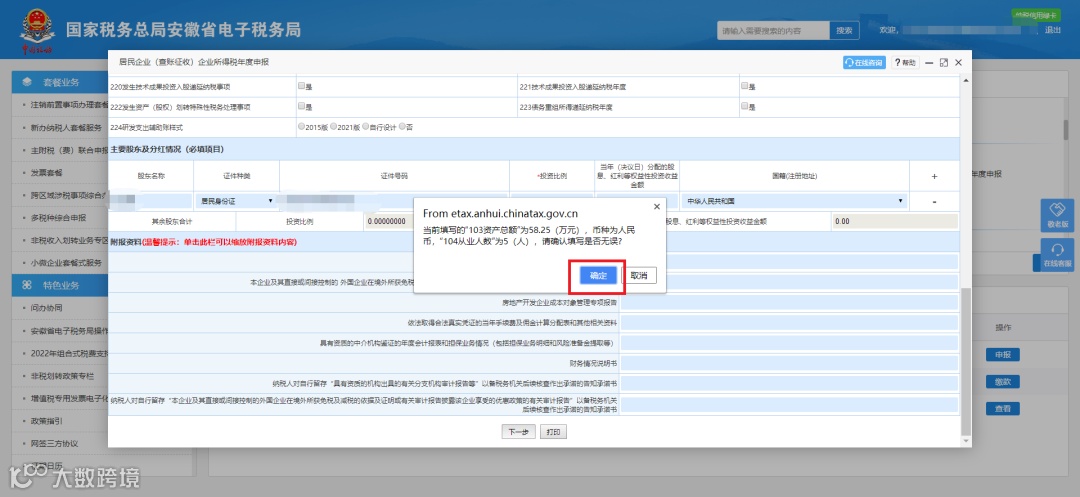(二)非小微企业,系统自动提取投资比例前十位的股东信息,股东数量超过十位的,其余股东有关数据合计在【其他股东合计】。