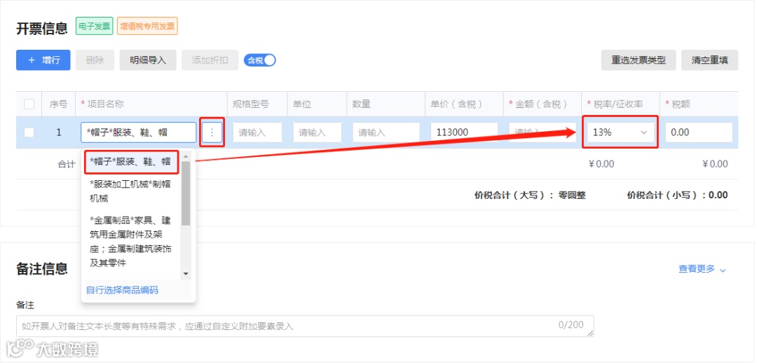 14. 蓝字发票开具时,填写项目名称后为什么无法带出税率?