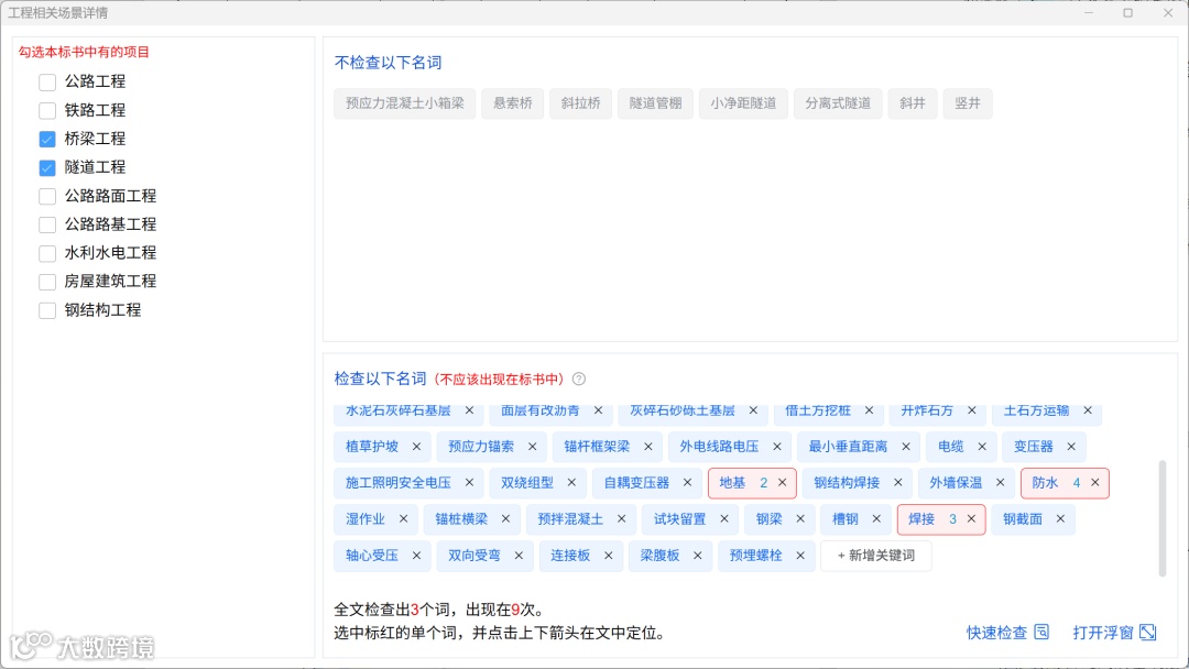 不仅如此,快书编标还有“标书检查”、“场景检查”、“标书查重”等功能帮你规避毫米级错误,全方位细致检查,让标书内容准确无误,提高你的中标几率~