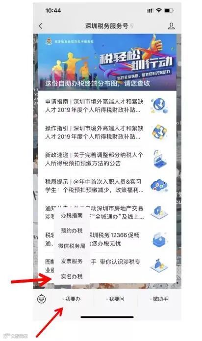 4.关注微信公众号深圳税务服务号之后,点击我要办,然后选择实名办税进行注册;