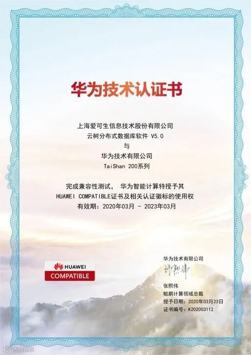 此次云树Shard(分布式数据库)与华为Taishan 200系列的兼容互认,是国产基础软件的强强联合,代表国内基础软件生态圈的进一步扩大。提供分布式环境下融合数据服务能力,满足大型企业对分布式事务一致性、数据安全、高可用容灾等多方面的要求。