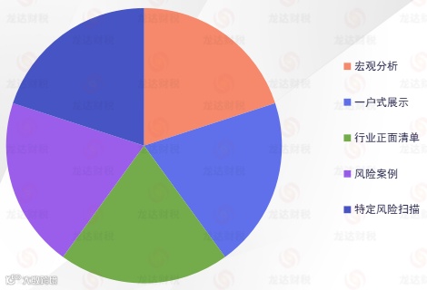 具体来看,这个系统主要有5个模块:分别是宏观分析、一户式展示、风险案例、特定风险扫描、行业正面清单。